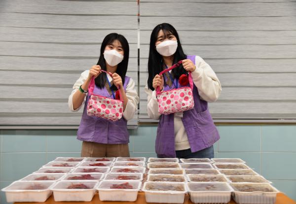 밑반찬 서비스는 2가지로 반찬으로 구성되어 보냉 가방에 담아 제공되며, 복지관 직원들이 15명의 독거어르신 댁에 직접 방문하여 따뜻한 안부와 함께 전달하고 있다.