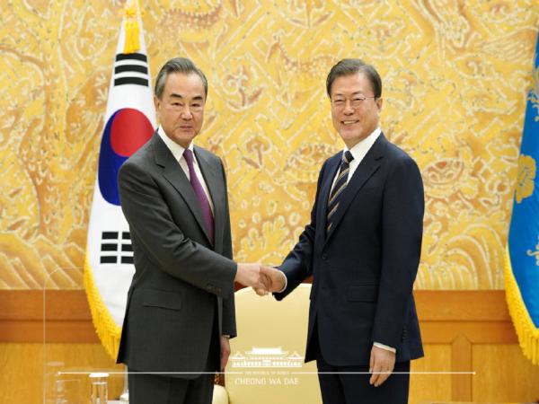 문 대통령은 왕이 국무위원의 방한을 환영하면서, 코로나 상황에서도 양국이 긴밀한 협력과 소통을 유지해 오고 있는 것을 평가했다. 또한 한중 간 방역 협력의 성과를 바탕으로, 앞으로도 양국 관계 발전을 견인해 왔던 경제, 문화, 인적 교류 등 제반 분야에서 교류가 활성화되고 양 국민들의 상호 왕래에 불편함이 없도록 양국의 관련 당국들이 더욱 긴밀히 협력해 줄 것을 당부했다.