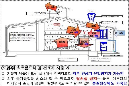 김은 지난해 수출 5.8억 달러를 달성한 대표 수산물 수출품목이자, 최근 10년간 산업 규모가 5배 이상 성장한 유망 품목이다. 그러나, 전국에 약 400여곳으로 추산되는 마른 김 가공업체들은 외부로의 열 손실이 많은 전기히터 또는 온풍기를 이용하여 김을 건조함에 따라 건조설비 운영비에 대한 부담이 컸다. 이에, 해양수산부는 수산가공업의 경영여건을 개선하고, 수출 경쟁력을 향상시키기 위해 올해부터 지자체와 함께 에너지절감시설인 ‘히트펌프식 김 건조설비’ 보급사업*을 시작하였다.