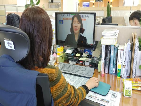 충주시는 26일 시청 공무원 260여 명을 대상으로 2회에 걸쳐 민원서비스 향상을 위한 온라인 친절 교육을 실시했다.