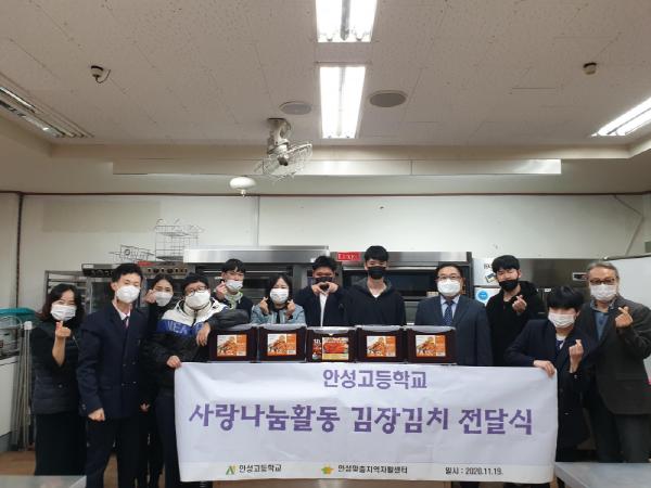 안성고는 지난 19일 겨울 김장철을 맞아 안성맞춤지역자활센터(센터장 심상원)에 이웃사랑의 마음을 담아 직접 담근 김장김치 30포기를 전달하는 ‘안성고등학교 사랑 나눔 활동 김장김치’ 전달식을 가졌다.