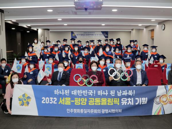 이영희 민주평통 광명시협의회장은 인사말을 통해 “이번 제3기 평화공감 통일아카데미 시민교실을 4강까지 코로나19 어려운 시기에도 수료하신 모든 분께 감사 드리며, 남북 관계가 우리의 의지와 달리 극변하면서 빠르게 변화되고 있는 상황에 수료하신 수강생 여러분이 남북관계에 홍보대사로서 평화통일의 공감을 형성할 수 있는 리더로 활동해 주길 바란다”고 했다.
