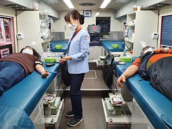 거창군은 26일 코로나19 장기화로 인한 헌혈 수급난을 해소하고 원활한 혈액 수급을 위해 거창군청 앞 로터리와 한국승강기대학교, 경남도립거창대학에서 대한적십자사 경남혈액원과 함께 헌혈버스 5대를 이용해 ‘코로나19 극복 사랑의 헌혈 릴레이’ 행사를 실시했다.