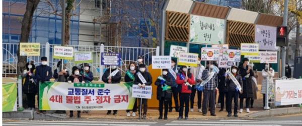 특히, 4대 불법 주정차 금지구역(횡단보도, 소화전 5m, 모퉁이 5m, 버스정류장 10m) 홍보물을 배부하고, 현수막 및 피켓을 활용한 거리 홍보를 통하여 모든 시민이 안전하게 생활할 수 있는 낭만항구 목포 조성에 시민들의 적극적인 참여를 유도하였다.