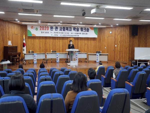 서천군지역사회보장협의체가 지역사회복지 협력 체계를 구축하고 지역복지 발전을 논의하기 위해 지난 26일 서천문화원 강당에서 2020년 민·관 사회복지 학술 워크숍을 개최했다.
