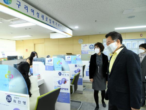 구리시 안승남 시장은 26일 ‘구리시 온라인 채용박람회’ 행사장을 방문하고 코로나19 여파 속 일자리를 구하는데 더욱 어려움을 겪고 있는 참여 구직자들의 고충을 청취하며 취업 성공을 격려했다고 밝혔다.
