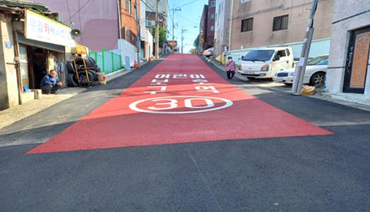 사업구역 내 비봉초등학교 주변의 인도와 어린이 보호 안전 휀스를 정비하여 안전한 등?하교길을 조성하였으며, 어린이 보호구역과 급경사 도로에 미끄럼방지포장 공사를 완료했다.