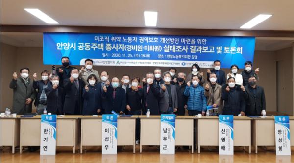 안양시노사민정협의회(이하 노사민정협)는 지난 25일 안양노동복지회관에서 공동주택 종사자 실태조사 결과 발표를 겸한 토론회를 열었다.