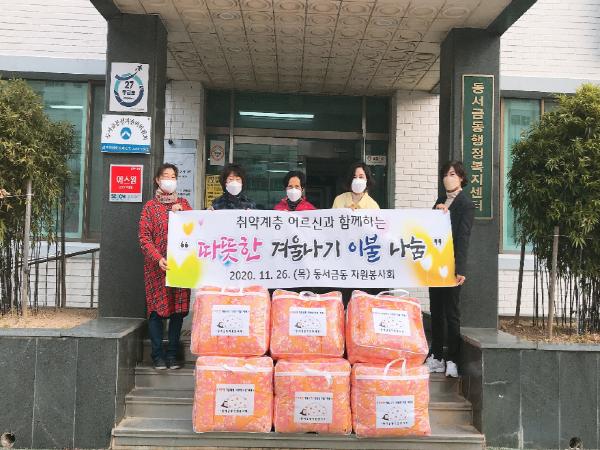 동서금동자원봉사회(회장 박영순)는 지난 26일 동절기 한파대비 취약계층 어르신 15가구에 따뜻한 겨울이불을 전달했다.