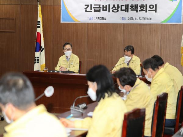 코로나19 선제적 방역대응 방안으로 △공직사회 복무관리 강화 △공공시설 및 사회복지시설 운영 검토 △수학능력시험 교통대책지원 방역강화 △취약지역 방역소독 강화 △재난안전대책본부 강화 등이 논의됐다.