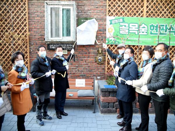 시는 27일 광명3동 골목숲 사업지(광명로928번길 일원)에서 현판식을 갖고 골목숲 완공을 축하했다.