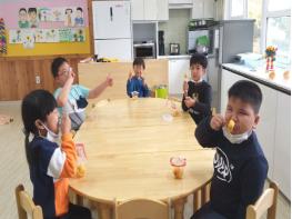 한편, 올해는 지난 6월부터 10월까지 13개교 23개 돌봄교실의 386명을 대상으로 주 2회(수, 금요일)로 다양한 제철 과일을 먹기 좋은 크기로 잘라 컵이나 파우치 등 신선편이 형태로 총12031개를 공급하였으며 사업비는 2천313만원(국 50, 도 15, 군 35%)이다.