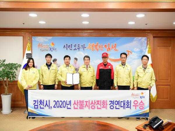 김천시가 경상북도에서 주최하는 2020년 산불지상진화 경연대회에서 우승을 하는 영예를 안았다. 지난 11월 12일 김천시 대항면 소재의 친환경생태공원에서 열린 이번 산불지상진화 경연대회에서 김천시는 참가 시군 20개 중 1위를 기록, 우승이라는 쾌거를 이루었다.