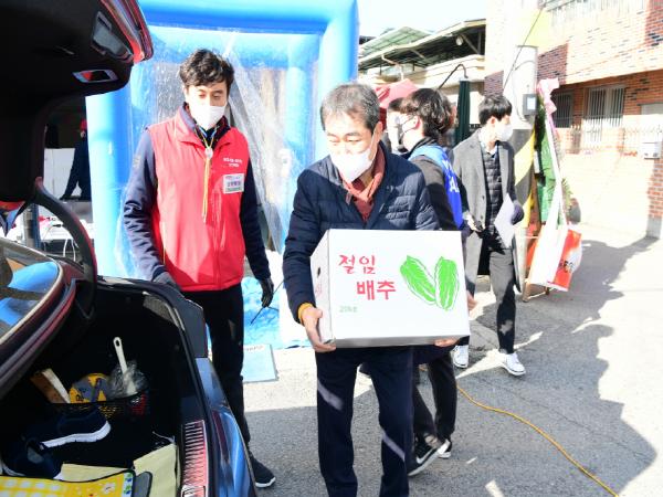 제14회 황금시장 김장양념축제가 11월 28일(토) 오전 11시부터 황금시장에서 성황리에 개최됐다. 이번 행사는 코로나19가 재확산 됨에 따라 기존 현장 체험을 드라이브스루(차량 이동식) 방식으로 김장 재료 키트를 배부하여 각 가정에서 체험할 수 있도록 진행됐다. 사전 신청한 200여명 참여자들은 절임 배추와 양념으로 구성된 20kg 김장키트와 수육, 마스크, 경품 등을 차량에서 수령하였다.