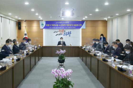 의왕시는 30일 시청 소회의실에서 백운·장안·고천지구 등 신규 도시개발사업 준공에 따른 시민들의 대중교통 편의를 개선하고자 실시한‘의왕시 대중교통 노선체계개편 용역’최종보고회를 가졌다고 밝혔다.