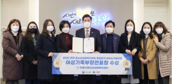 의왕시청소년상담복지센터가 전국 청소년상담복지센터 운영평가에서 2년 연속 최우수기관으로 선정되어 여성가족부장관상을 수상하는 영예를 안게 되었다.
