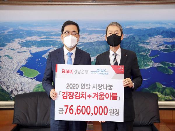 BNK경남은행은 어려운 이웃들의 따뜻한 겨울나기를 지원하기 위해 시가 6만원 상당의 김장김치 1600상자와 고급겨울이불 440채를 마련했다. 성품은 읍면동을 통해 지원될 계획이다.