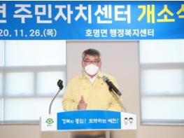 김학동 군수는 “주민자치위원들과 많은 분들의 노력으로 호명면 주민자치센터를 개소하게 된 것을 기쁘게 생각한다.”며 “주민자치위원 역량강화와 다양한 프로그램 운영 등으로 지역 주민들의 문화·복지를 충족할 수 있도록 행정적인 지원을 아끼지 않겠다.”고 말했다.