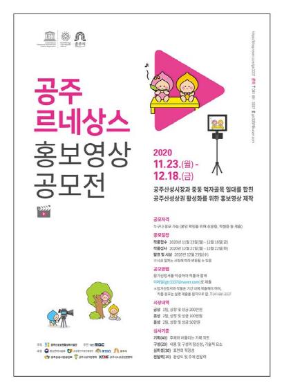 결과는 12월 23일 발표되며, 공모전 수상작은 내년 3월 구축 예정인 공주산성상권 홈페이지 및 유튜브 채널에 게재되고, 기타 다양한 매체를 통해서도 상권 홍보물로 활용될 계획이다.