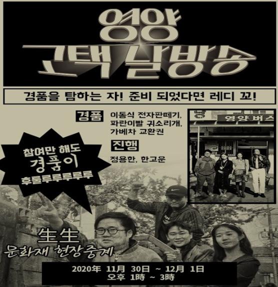 또한 영양군의 고택 및 주변 문화재 방문 활성화를 위한 이벤트도 마련됐다. 방송을 본 후 영양군 소재의 문화재와 같이 인증한 사진을 인증샷 이벤트 페이지에 업로드하면 확인 후 영양사랑상품권 등 다양한 경품도 받을 수 있다.