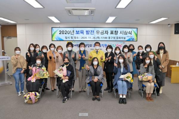 부산시 동구는 지난 26일 동구청 중회의실에서 보육교사 등 20명이 참석한 가운데, ‘2020년 보육발전 유공 표창 시상식’을 개최했다.