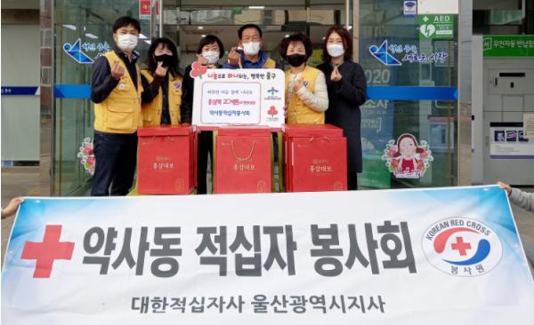 이날 전달한 후원물품은 홍삼농축액 20세트, 시가 40만원 상당으로, 대한적십자사 울산지사의 후원지원금으로 구입된 것이다.