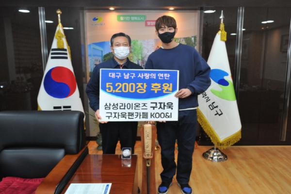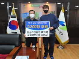 대구시 남구은 지난 27일, 삼성라이온즈 구자욱선수와 구자욱팬카페 KOO&I 에서 남구청을 찾아 취약계층의 따뜻한 겨울나기를 위해 연탄 5,200장을 기탁했다고 밝혔다.