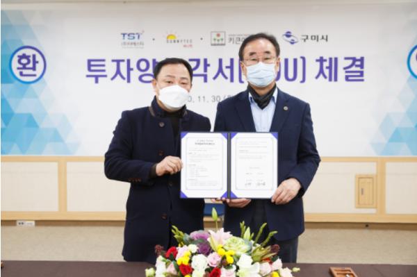 구미시는 2020년 11월 30일(월) 10시 30분 구미시청 3층 상황실에서 ㈜TST, 써니텍, ㈜키큰아이 3개 사와 310억 규모의 투자양해각서(MOU)를 체결하였다.