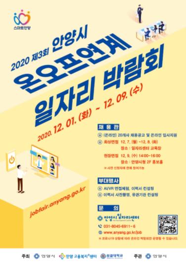 박람회는 코로나19 확산 방지차원에서 구축한 온라인 취업박람회 전용 홈페이지(jobfair.anyang.go.kr)를 기반으로 열린다.