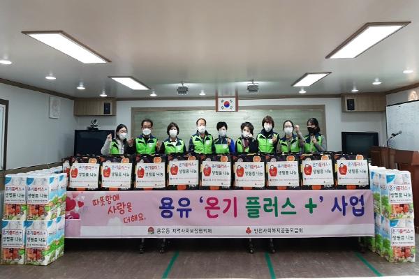 ‘온기플러스 생필품나눔’사업은 넓은 면적에 비해 상점이 부족하고 포장된 길이 많지 않은 지역의 단점이 거동불편 가구에 위기상황을 초래하는 일이 없도록 2018년부터 용유동 지역사회보장협의체가 진행하고 있는 사업이다.