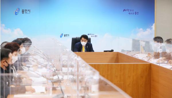 백군기 용인시장이 30일 간부공무원들과의 티타임에서“책상 위의 행정이 아니라 현장에 직접 뛰어들어 일이 돌아가는 과정을 살피는 현장 밀착형 행정을 펼쳐달라”고 주문했다.