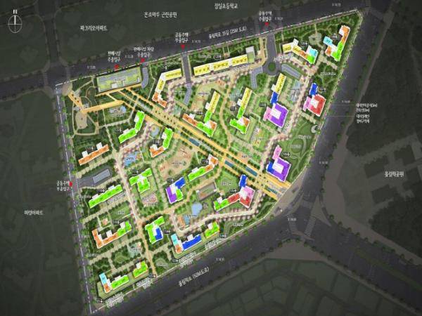 단지내 경관중심축 공공보행통로를 계획하고, 도시가로 특성을 고려한 오픈스페이스 및 지역커뮤니티를 계획하여 지역가로 활성화를 유도하며, 지역 주민간 다양한 활동이 이루어지고 소통이 가능한 커뮤니티 배치계획을 통하여 지역 공동체 활성화 및 지역 공동체의식 향상을 유도하였다.