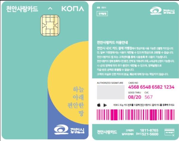 천안사랑카드는 주소지 관계없이 만 14세 이상이면 누구나 구입할 수 있다. 천안사랑카드 어플을 설치한 뒤 카드등록, 충전하면 천안시내 카드단말기가 설치된 점포에서 바로 사용할 수 있다.