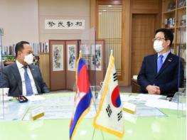 염태영 수원시장이 롱 디멍(Long Dimanche) 주한 캄보디아 대사를 만나 “수원시와 캄보디아 시엠립주가 우호협력 관계를 이어나갈 수 있도록 캄보디아 정부의 긴밀한 협력을 부탁드린다”고 밝혔다.