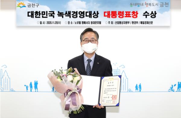금천구가 지난 11월 25일(수) 노보텔 앰배서더 동대문 호텔에서 열리는 2020년 녹색경영대상 시상식에서 대통령표창을 수상했다.