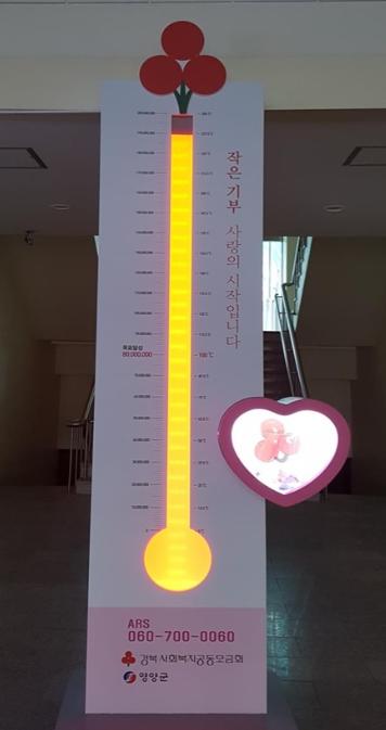 영양군은 12월 1일부터 2021년 1월 31일까지(62일간) 군청 로비에 사랑의 온도탑을 설치하고‘나눔으로 희망을 이어주세요’라는 슬로건으로‘희망 2021 나눔캠페인’을 전개한다.