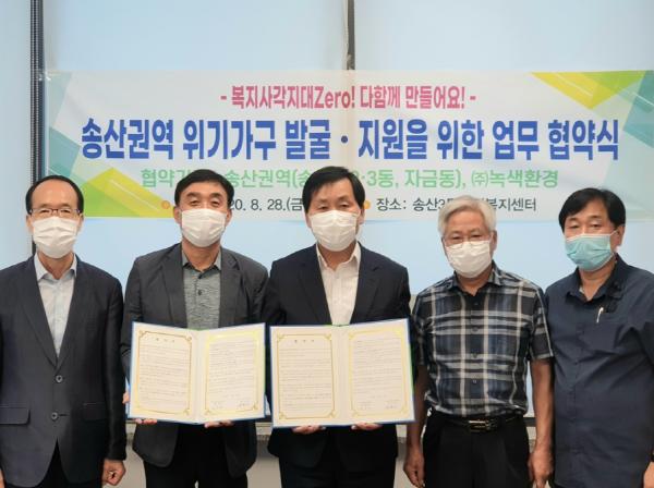 송산권역 네트워크는 크게 미성년 교육기관(학교, 어린이집, 유치원 등), 주거취약계층 관련기관(임대아파트 관리사무소, 공인중개사무소 등), 인적안전망(송산3동 통장협의회, 지역사회보장협의체, Happy매니저 등)으로 구성되어 있으며, 이들과의 지속적인 업무 협조를 통해 복지사각지대를 상시 발굴할 수 있도록 지역보호체계를 구축하고 있다.