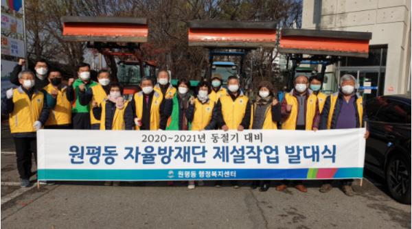 평택시 원평동 자율방재단은 지난달 30일 원평동 행정복지센터에서 폭설로 인한 주민 피해에 대비하기 위해 15명의 자율방재단원들이 모여 제설작업 발대식을 가졌다.