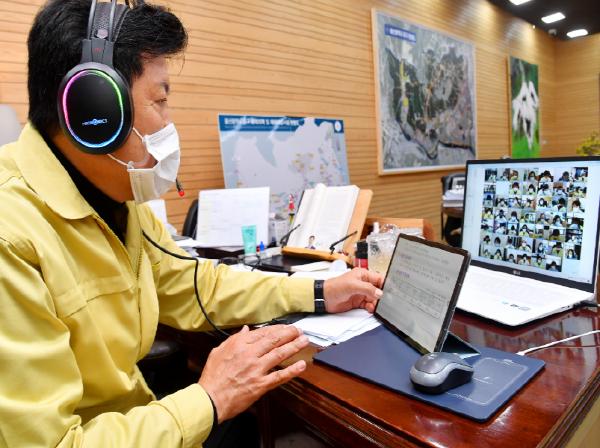 박태완 중구청장은 지난 27일 코로나19의 재확산 등으로 인해 ‘행안부 온-나라 이음 PC 영상회의 시스템'을 활용해 12월 월간업무계획 보고회를 비대면 영상회의로 실시했다.