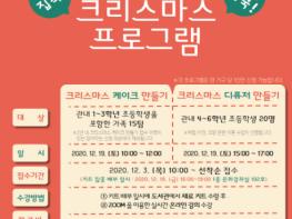 19일 오전 10시에 시작하는 크리스마스 케이크 만들기는 부모님과 함께 나만의 특별한 크리스마스 케이크를 만드는 프로그램으로, 초등학교 1~3학년 학생을 포함한 가족 15팀을 모집한다.