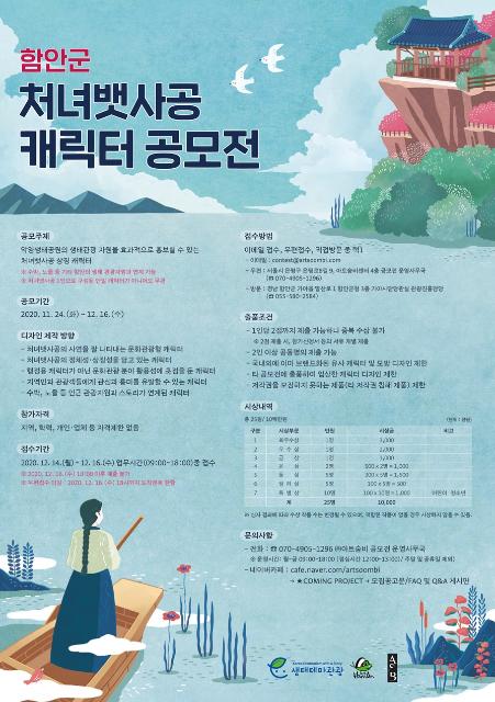 함안군은 문화체육관광부 소관 ‘생태테마관광 육성사업’의 일환으로 ‘함안군 처녀뱃사공 캐릭터’ 디자인 공모전을 열고 이달 16일까지 작품을 접수받는다고 1일 밝혔다.