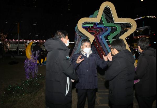 홍인성 중구청장은 지난 28일부터 29일까지 이틀간 시설물 점등과 안전 확인을 위해 관계자와 현장을 방문하여 점등상황을 확인하고 위험사하이 없는지 점검하였으며, 현장 점검을 마친 홍인성 구청장은 “장기화된 코로나19로 지친 마음에 주민들에게 조금이나마 위로의 공간이 되길 바란다”고 말하며, 코로나19 방역수칙 준수와 시설물 안전 점검에 대해 거듭 강조했다.