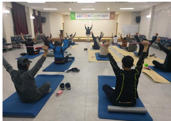 실천사업으로 ?농작업 위험요소 분석과 컨설팅 ?맞춤형 농작업 안전장비·농작업 보호구 ?농작업 안전관리와 운동 교육 ?농작업 안전관리 기록부 작성 등을 지원·추진했다.