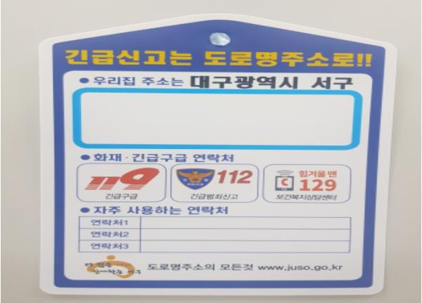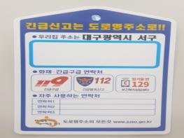 대구시 서구는 어르신들에게 긴급 상황 발생 시 신속히 주소를 전달하고 신고할 수 있도록 도로명주소 스티커를 제작해 배포했다.