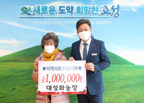 대성화농장(대표 강장순)는 11월 30일 고성군청을 방문하여 관내 어려운 이웃들을 위해 성금 100만 원을 전달했다.