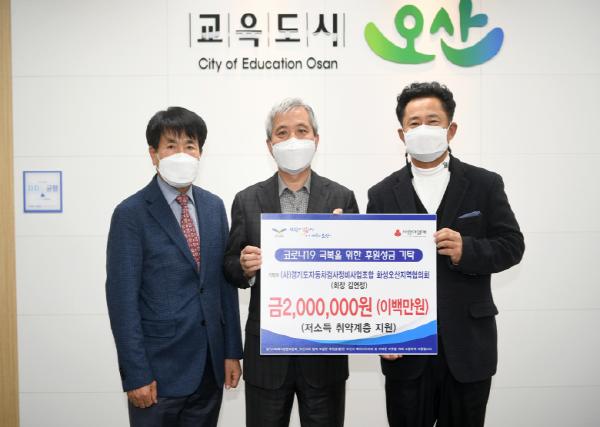 오산시는 경기도자동차검사정비사업조합 화성오산지역협의회(회장 김연정)가 12월 1일 시청을 방문해 관내 저소득층을 위해 사용해 달라며 성금 2백만원을 기탁했다고 밝혔다.