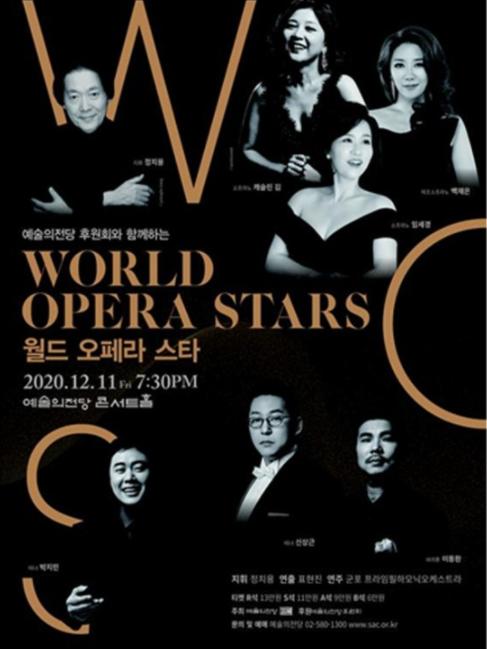 예술의전당(사장 유인택)은 예술의전당 후원회(회장 서병기)와 함께 오페라 갈라 콘서트 '월드 오페라 스타'를 12월 11일 콘서트홀에서 개최한다고 밝혔다.