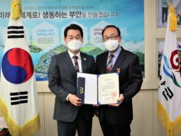 1일 오전 부안군수 집무실에서 ㈜참프레 고흥렬 대표는 대통령 표창을, ㈜아리울마켓 윤현식 대표는 국무총리표창을 전달받았다.
