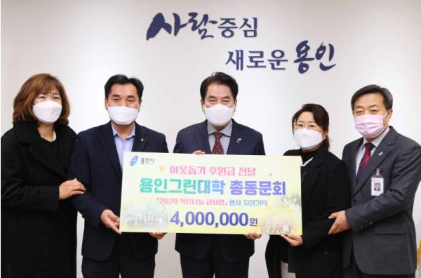 백군기 용인시장은 “동문회에서 지역사회에 대한 나눔을 실천해주어 감사드리며, 기탁금은 소외 계층에게 잘 전달하겠다”면서“어려운 이웃들을 충분히 보듬어줄 수 있는 따뜻한 지역 공동체를 함께 만들어 나가자”라고 말했다.