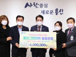 용인시는 1일 용인그린대학 총동문회가 시장실을 방문해 어려운 이웃에게 써달라며 성금 400만원을 기탁했다고 밝혔다.